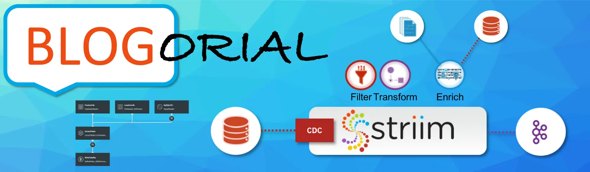 In this series of blog-based tutorials, we are guiding you through the process of building data flows for streaming integration and analytics applications using the Striim platform. This tutorial focuses on SQL-based stream processing for Apache Kafka with in-memory enrichment of streaming data. For context, please check out Part One of the series where we created a data flow to continuously collect change data from MySQL and deliver as JSON to Apache Kafka.