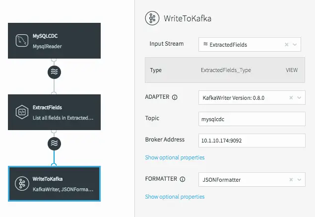 To fix this, all we need to do is change the input stream for the WriteToKafka component.