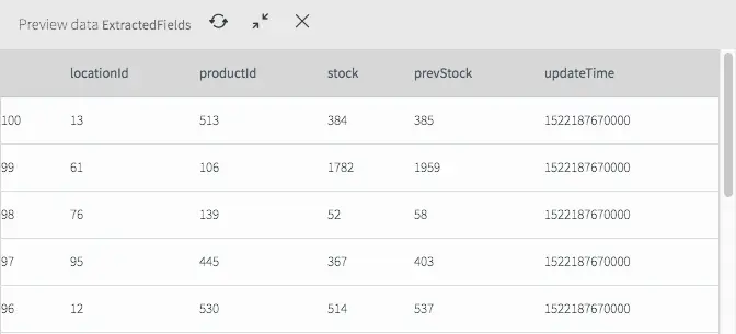 Extracted Fields Viewed by Previewing Data Streams