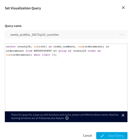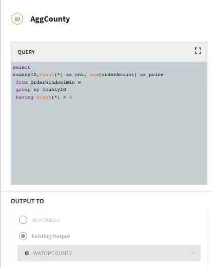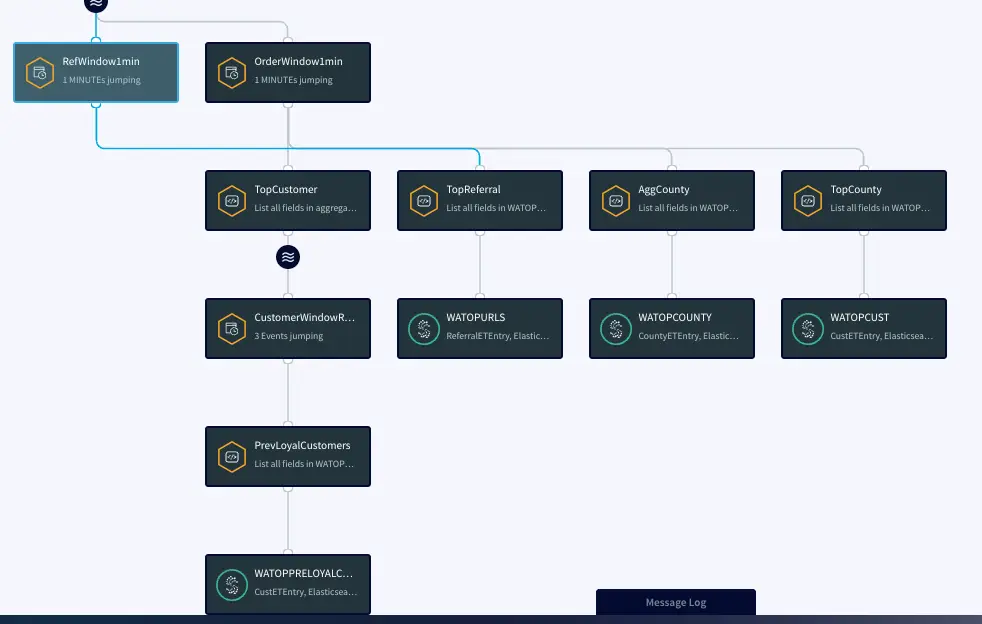 In this section continuous queries are written on orders and referral streams to aggregate data by top referral urls, top selling counties, top customers, and loyal customers. The data is then stored in the WAction component which is used to populate the Striim dashboard.