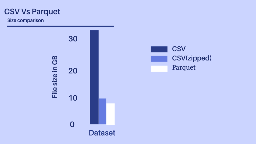 Parquet data format is more efficient when dealing with large data files and goes hand in hand with Spark which allows it to read directly from a Spark data frame while preserving the schema. At the same time, Parquet can handle complex nested data structures and also supports limited Schema evolution to accommodate changes in data like adding new columns or merging schemas that aren’t compatible.