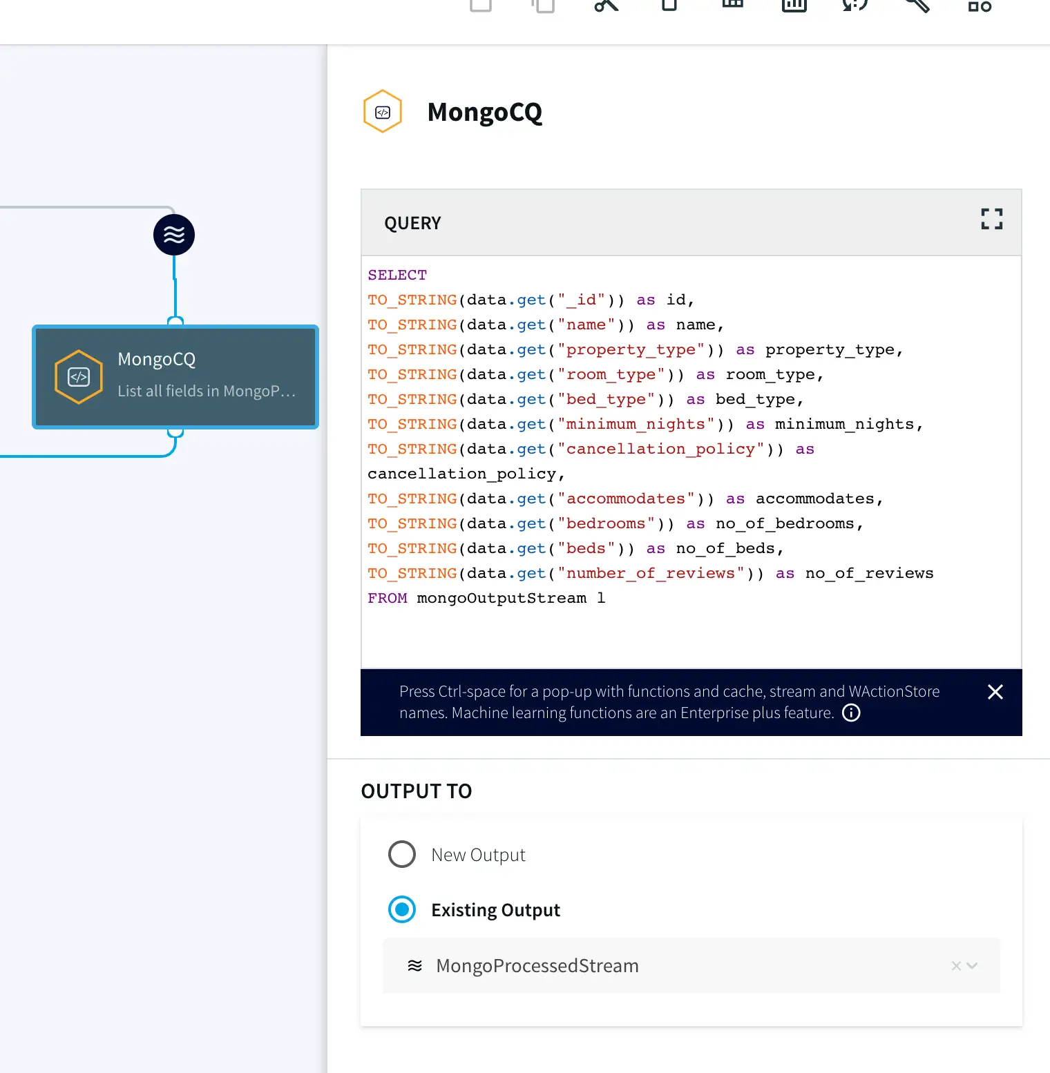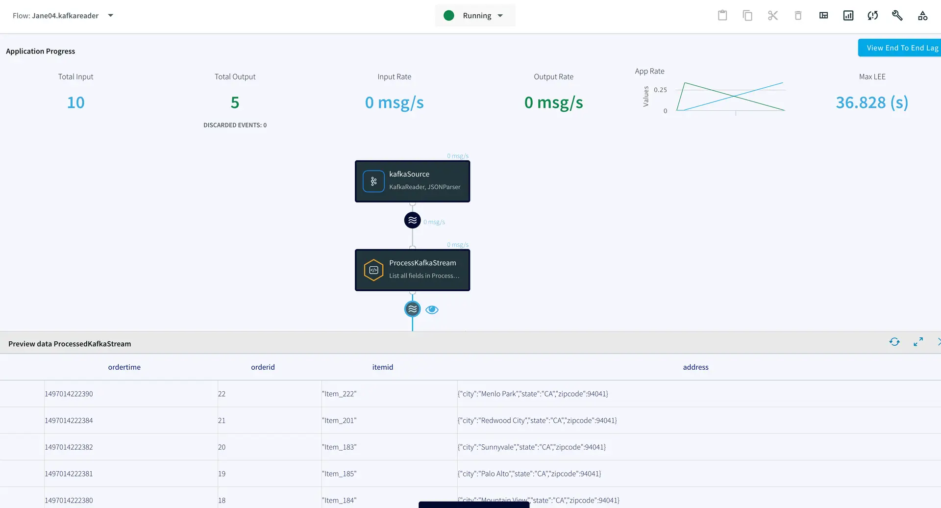 You can preview the processed data by clicking on the ‘eye’ wizard next to the stream component.