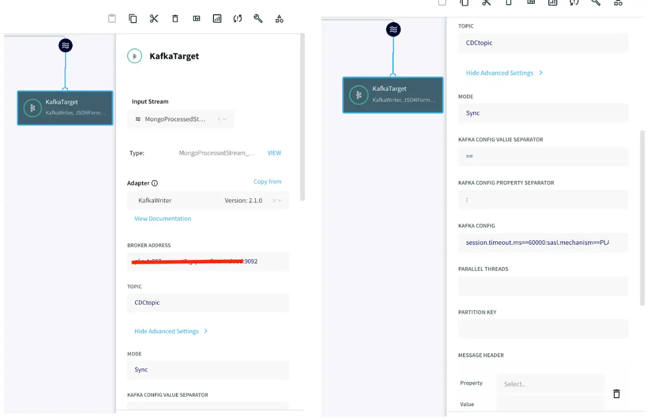 Once the source, target and CQ are configured, select Deploy from the dropdown menu next to Created. Choose any available node and click Deploy. After the app is deployed, from the same drop-down, select StartApp.