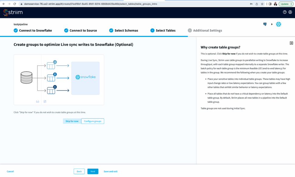 Striim for Databricks also offers intelligent performance optimization with parallel data processing by grouping the tables.