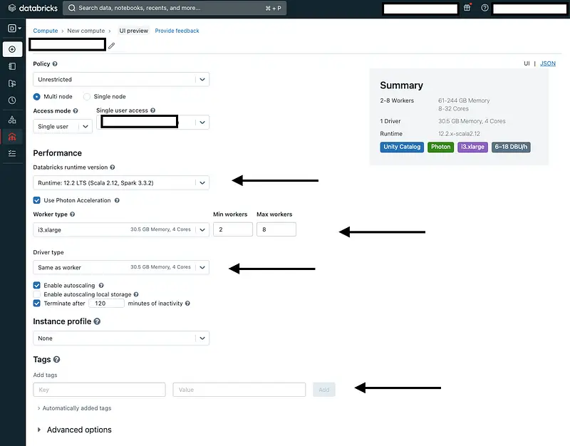 In your Databricks instance, navigate to the cluster creation interface. Configure the cluster settings according to your requirements, such as the cluster type, size, and necessary libraries.