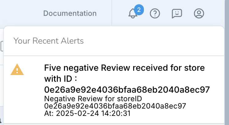 A combination of 5 reviews are generated for one store in this example, this would mean that the AI agent would categorise these and the jumping window will release an event downstream for the store and the web alert adapter would publish a web alert.